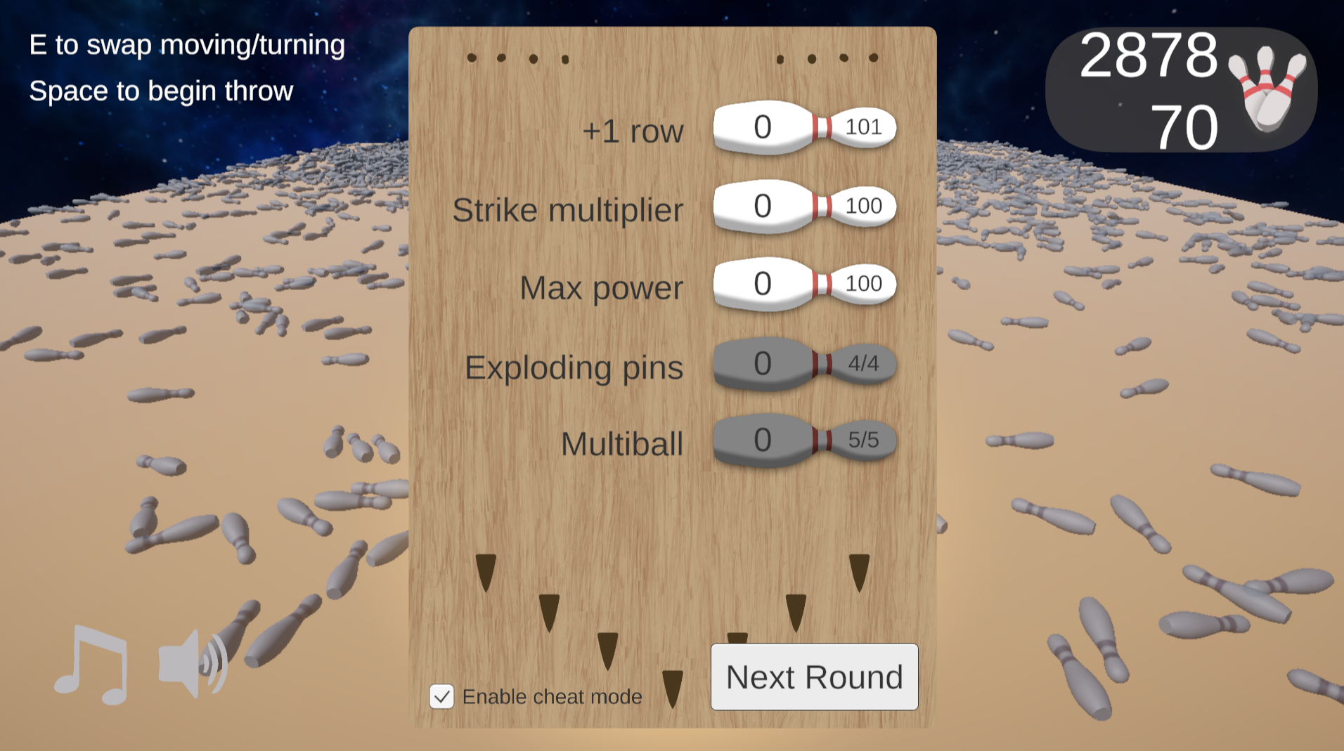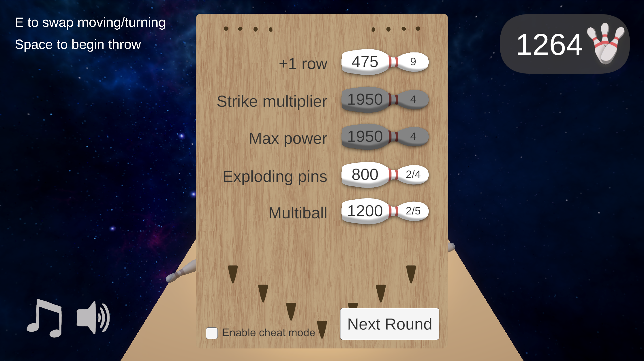 Space to throw and set power/spin